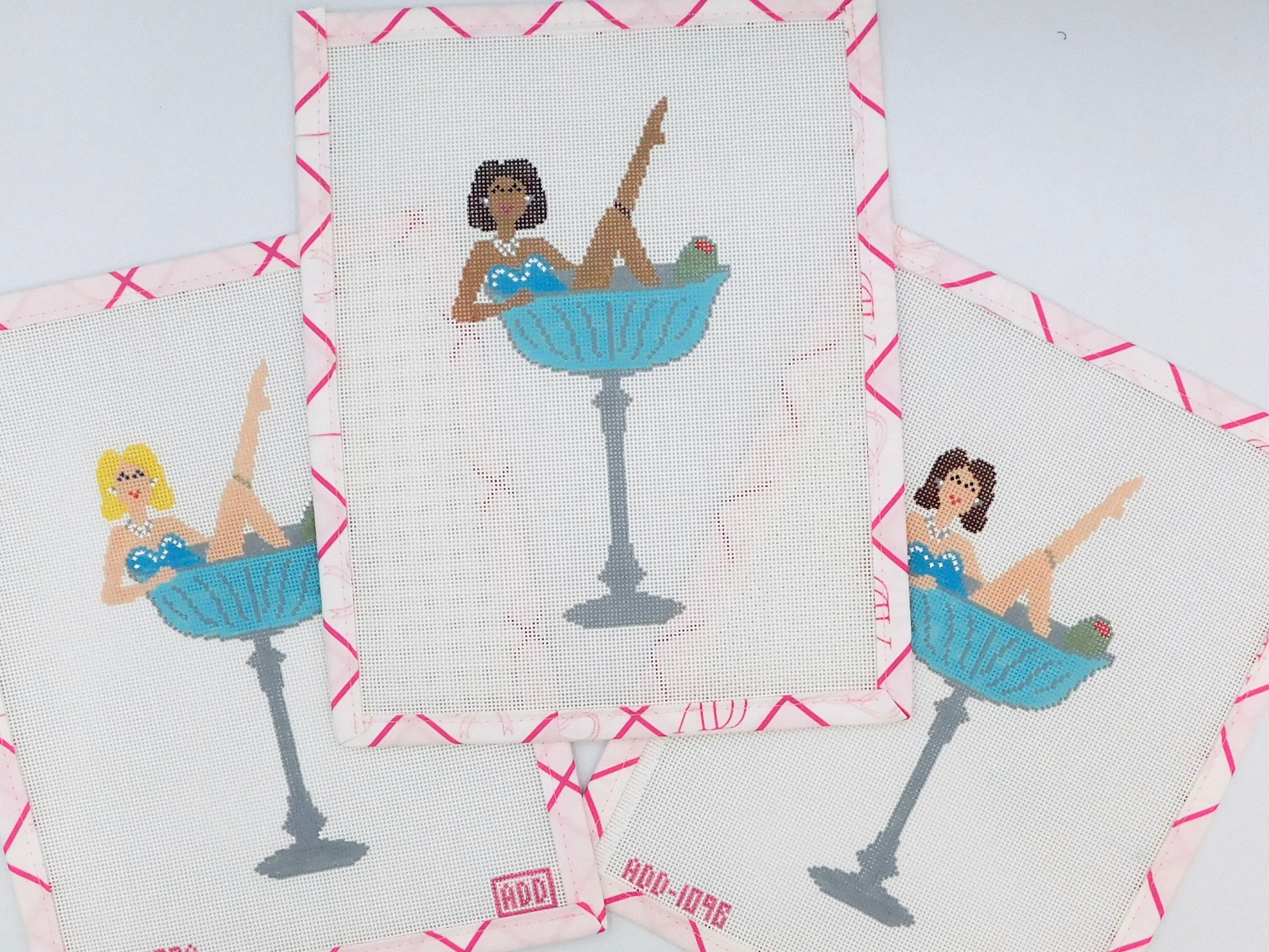 Do you make the whole place shimmer? Or just looking for a cute addition to your bar cart? This canvas looks great finished as a standup. Available in four different hair and skin tones, stitch one that looks like you, or collect all four girls for a little cocktail club!