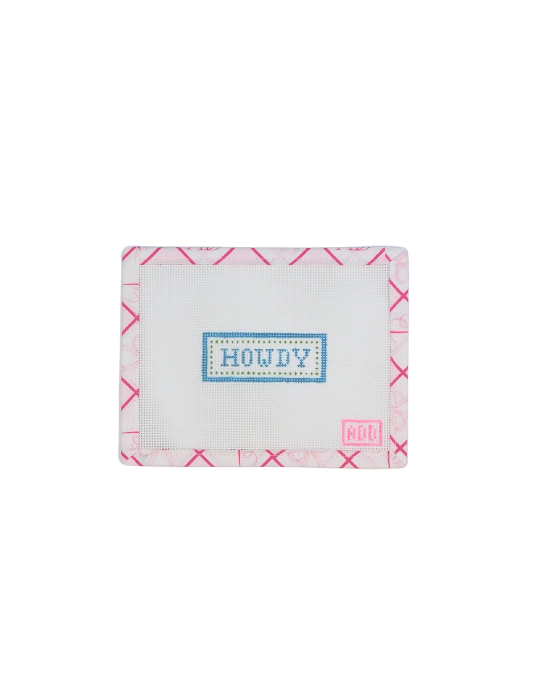 Mini version of the Howdy canvas in blue and green. A perfect beginner project or a quick stitch for experienced needlepoints. Looks great finished as a patch or bag charm!